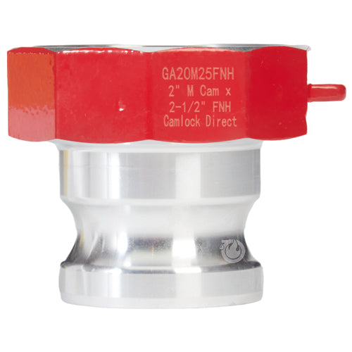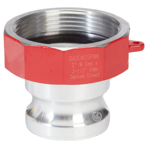 Our aluminum cam and groove to NH fire hose threaded fittings are designed to convert a standard NH/NST "fire hose thread" hose or adapter to a standard camlock. Finished in bright orange to distinguish them from regular camlock to NPT "pipe thread" cam and grove fittings. NH/NST threads are