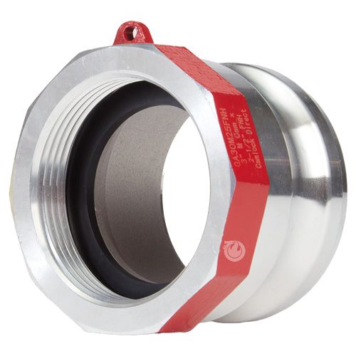 Our aluminum cam and groove to NH fire hose threaded fittings are designed to convert a standard NH/NST "fire hose thread" hose or adapter to a standard camlock. Finished in bright orange to distinguish them from regular camlock to NPT "pipe thread" cam and grove fittings. NH/NST threads are