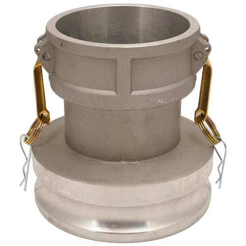 Aluminum 4 inch female camlock (Cam & Groove) coupler to 6 inch male camlock (Cam & Groove) coupler.