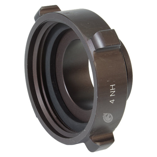Aluminum adapters are fabricated from seamless extruded 6061-T6 aluminum and hard coat anodized per MIL-A-8625 Type III, Class 1. Threads have a blunt start Higbee cut with indicators on adjacent lugs. Part identifications are permanent and stamped prior to hardcoat. Adapters and components meet the requirements of NFPA 1963.