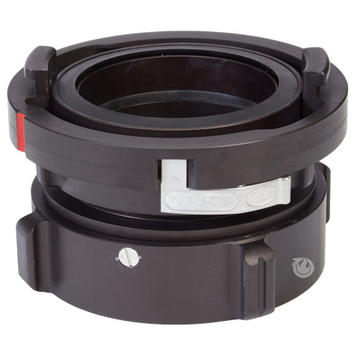 Storz Head component shall be forged from Alloy 6061 aluminum and heat treated to T6 temper. Adapters and components meet the requirements of NFPA 1963. Locking Storz are only available on 4, 5, and 6 inch. Locking springs prevent unintentional disconnects. Locks are stainless steel.