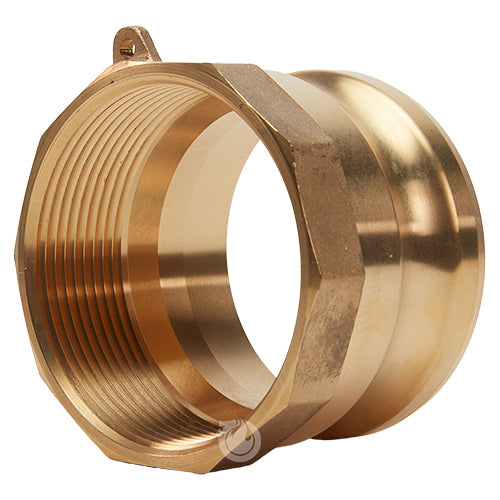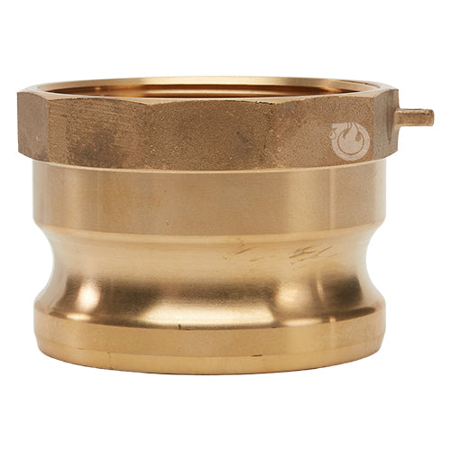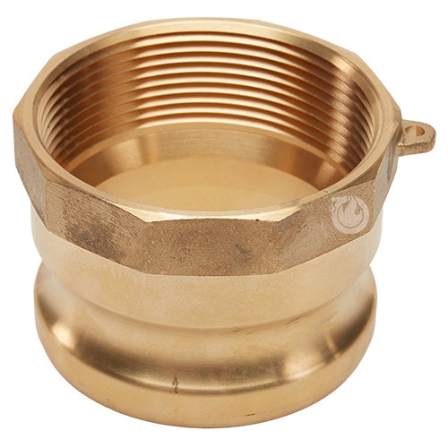 Global type "A" Brass 5 inch male camlock (Cam & Groove) coupler to 5 inch female NPT threads.