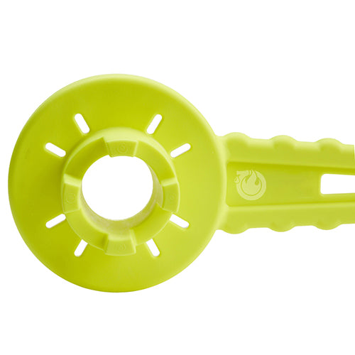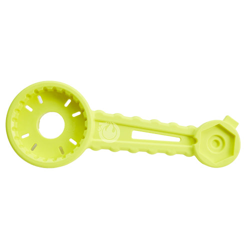 The pail & drum wrench is designed to loosen and tighten the caps found on standard (70 mm wide) 5 gallon foam pails and both the large and small bungs on 55 gallon drums. The 4578 is made from incredibly tough, glass-filled nylon, comes in high visibility colors and is spark and corrosion proof. The 4578 Wrench is 10 inches (254 mm) long and weighs just 6.5 ounces (185g).