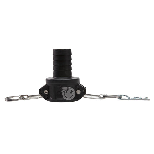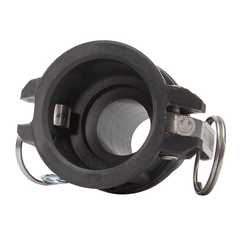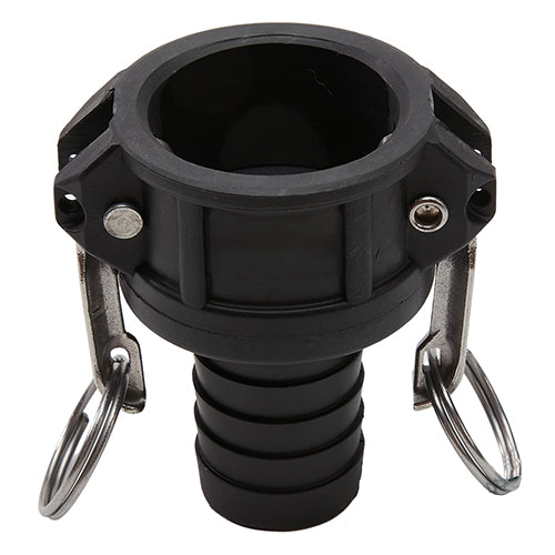 Type "C" polypropylene 1 1/2 inch female camlock (Cam & Groove) coupler to 1 1/2 inch hose shank.