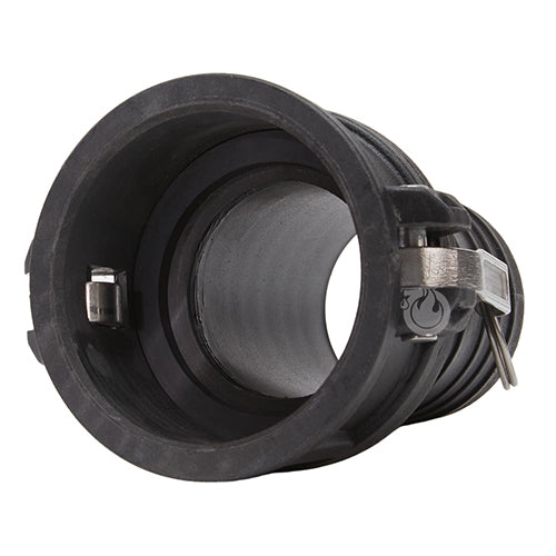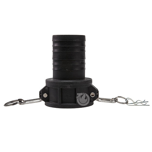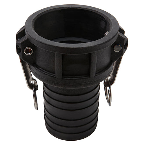 Type "C" polypropylene 3 inch female camlock (Cam & Groove) coupler to 3 inch hose shank.