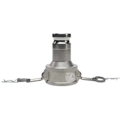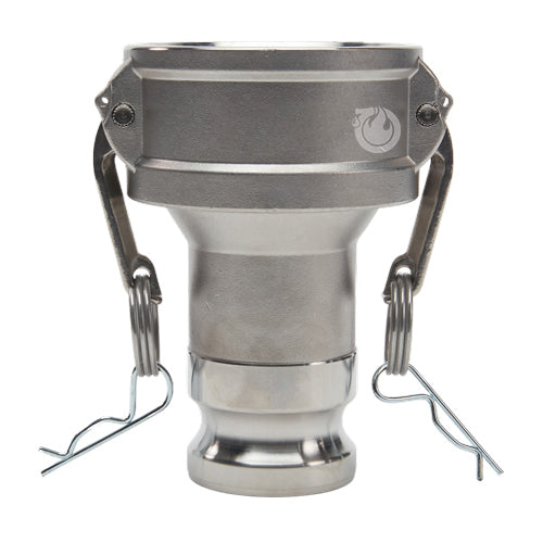 Stainless Steel 4 inch female camlock (Cam & Groove) coupler to 2 inch male camlock (Cam & Groove) coupler.